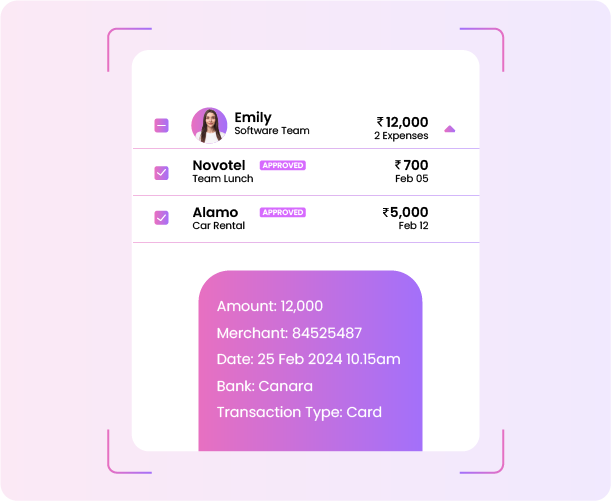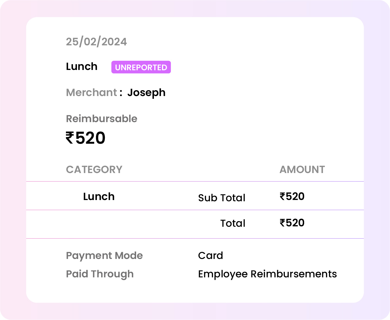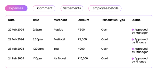 Set up approval workflows, review expenses with a click, and reimburse employees swiftly.